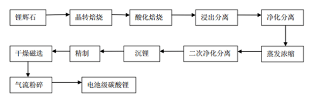 注:電池級碳酸鋰生產工藝流程圖